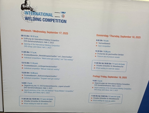 [Tisk] [Poslat e-mailem] [Hledat v článcích] Informační servis č. 304 Datum: 30.9.2025Autor: Václav Minařík - CWS ANB ISO/DIS 15614-9 Byl schválen Draft výše uvedené normy pro WPQR hyperbarického mokrého svařování. Připomínky uplatnilo USA, Německo a Indie (14 stran). Committee ISO/TC 44/SC 15 Edition number 1 English title: Specification and qualification of welding procedures for metallic materials — Welding procedure test — Part 9: Underwater hyperbaric wet welding Dozorový audit EWF a IIW Ve dnech od 9. do 11. proběhl úspěšně dozorový audit IIW a EWF na CWS ANB. Byl kontrolován systém kvality CWS ANB podle dokumentů IAB/EWF 001/416 a všech pravidel vztahujících se k jednotlivým autorizovaným kvalifikacím (15). bylo zkontrolováno 34 vybraných souborů pro rozdílné kvalifikace. Po vypořádání připomínek hlavní auditor doporučil pokračování CWS ANB v plné autorizaci. ![]() ... Recommendations: After solving all „(2)“ findings at the satisfaction of the LA, it will be recommended to continue the full authorisation for the scope with amendment of item 5.1, according to doc. IAB-025r55-23. Seminář v Beskydech Ve dnech 10. až 12.9.2025 proběhl 28. ročník svářečského semináře „Nové metody svařování, pořádaného Českým svářečským ústavem z Ostravy. Seminář pořádá každoročně ČSÚ Ostrava v Beskydech v horském hotelu Sepetná u Ostravice. V tomto roce už byla silnička hotelu opravená po loňských záplavách, takže cesta k hotelu byla bez problémů. ![]() ... ![]() Jako tradičně, na semináři ČSÚ, byl společenský večer s kulturním programem. SCHWEISSEN & SCHNEIDEN 20. ročník veletrhu SCHWEISSEN & SCHNEIDEN přivítal v Messe Essen více než 37 000 návštěvníků ze 100 zemí. Od 15. do 19. září 2025 nabídl přední světový veletrh technologií spojování, řezání a povrchových úprav příležitost seznámit se s nejnovějšími technologiemi, trendy a inovacemi od více než 800 vystavovatelů zastupujících 44 zemí, zadat objednávky a osobně si vyměnit odborné znalosti. Jak kvalita, tak mezinárodní profil odborných návštěvníků byly vynikající. Deset nejčastěji zastoupených zemí v zahraničí bylo Nizozemsko, Francie, Itálie, Belgie, Polsko, Brazílie, Španělsko, Japonsko, Spojené království a Severní Irsko, stejně jako Rakousko. Čtyři z pěti návštěvníků měli rozhodovací pravomoc. O veletrhu bylo již napsáno hodně, my se k němu vrátíme v některých příštích IS. V rámci světového veletrhu probíhala i národní a mezinárodní soutěž mladých svářečů. Zúčastnila se i Česká republika s nejlepšími ze soutěže O zlatý pohár Linde z Frýdku-Místku. Naši dobře reprezentovali. ![]() Soutěžní svařovací boxy ![]() Program soutěže ![]() Účastníci soutěže mladých svářečů ![]() Výkres soutěžní sestavy. Na zhotovení bylo 8 hodin Technická konference k 30. letům společnosti TESYDO „CERTIFIKACE A INSPEKCE PRO POSUZOVÁNÍ SHODY, BEZPEČNOST, ŽIVOTNOST A SPOLEHLIVOST VÝROBKŮ I TECHNICKÝCH ZAŘÍZENÍ“ V hotelu Cosmopolitan Bobycentrum v Brně ve dnech 23. a 24. září 2025![]() ... ![]() Ředitel TESYDO při úvodním projevu ![]() ... ![]() ... ![]() Cobot nahrazuje číšníka ![]() Zpěvačka s doprovodem. ![]() Sborník Technické konference s více než 1000 stránkami. Konference byla navštívena akademiky, certifikačními orgány, zástupci průmyslu, CWS ANB a dalšími. Přednášky byly na vysoké úrovni stejně jako společenský večer. Gratulujeme k 30 letům činnosti.